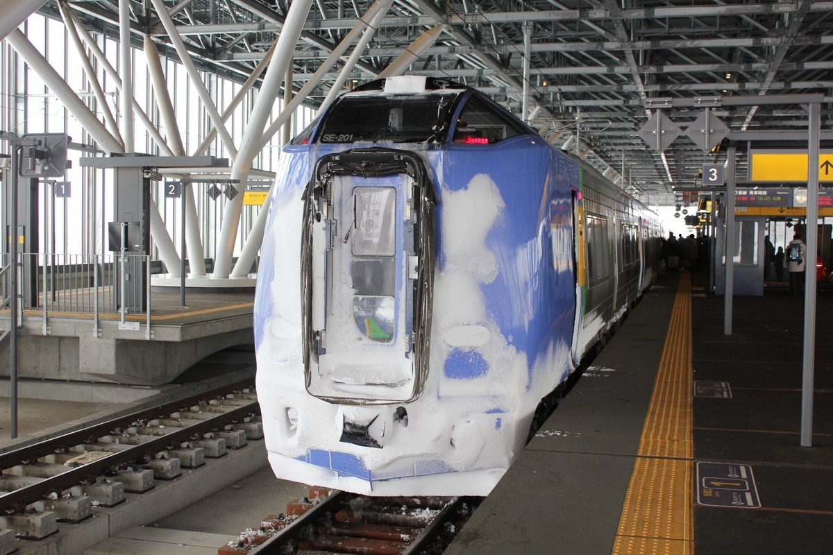 前日に札幌から乗車した車両が折り返し運転するため、再び同じ列車に乗車します。